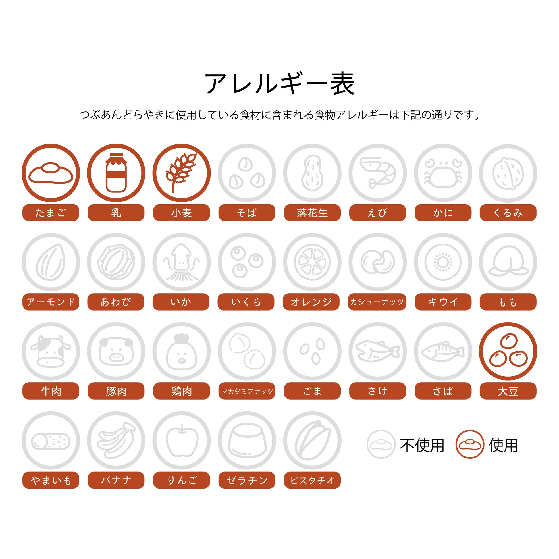 砂糖(国内製造)、卵、小麦粉、小豆、はちみつ、還元水あめ、植物油脂(乳成分を含む)、コーンシロップ、寒天/加工でん粉、膨張剤、グリシン、乳化剤(大豆由来)、増粘多糖類